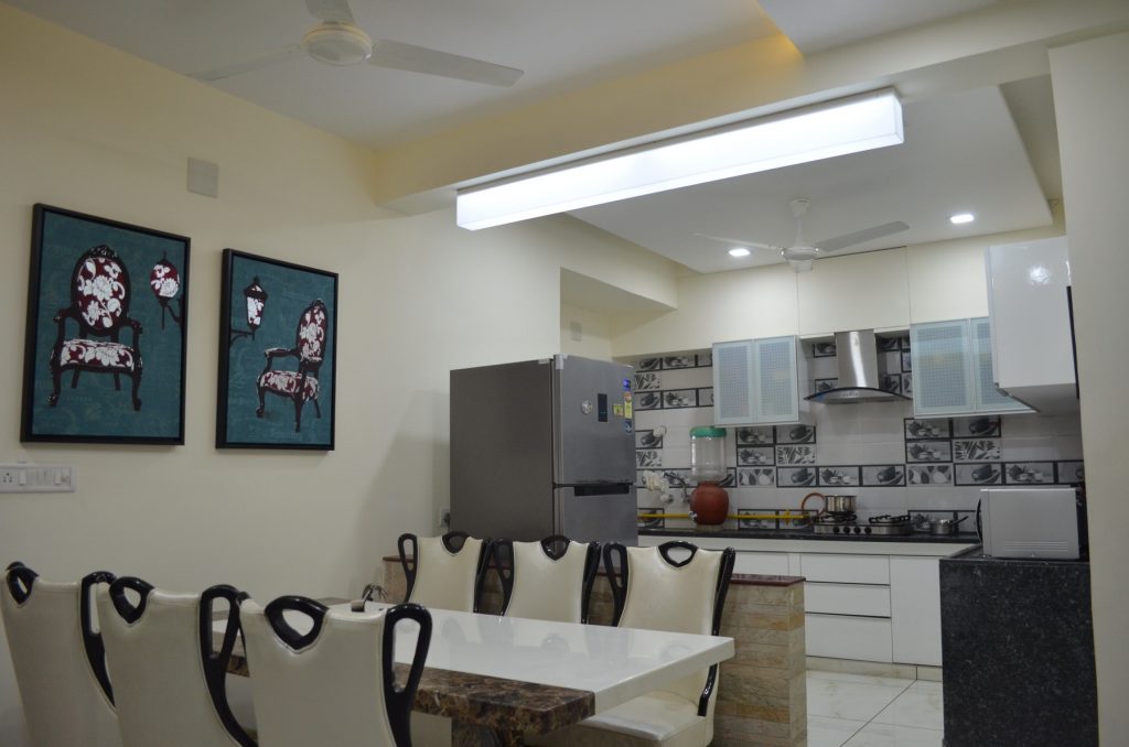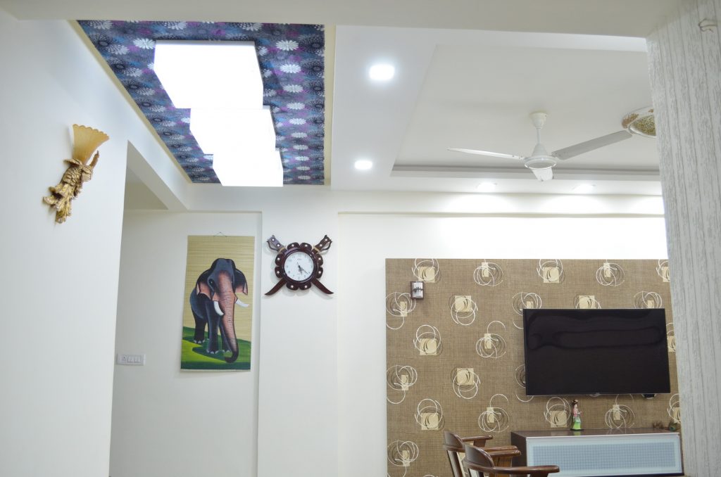In this modern sanctuary, textures intertwine with finesse—intricate leatherwork, visionary stretch ceilings, and the refined allure of decorative laminates. Wooden patti accents add a touch of timeless charm, infusing warmth into the contemporary design. Every corner becomes a canvas for innovation, where diverse materials harmonize seamlessly, creating a home that is a testament to both creativity and comfort.