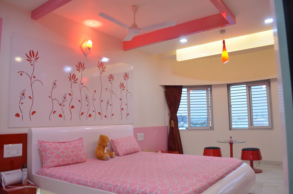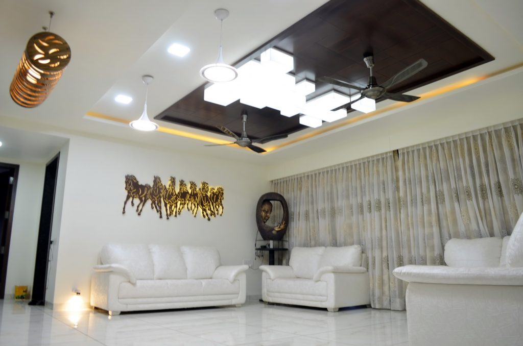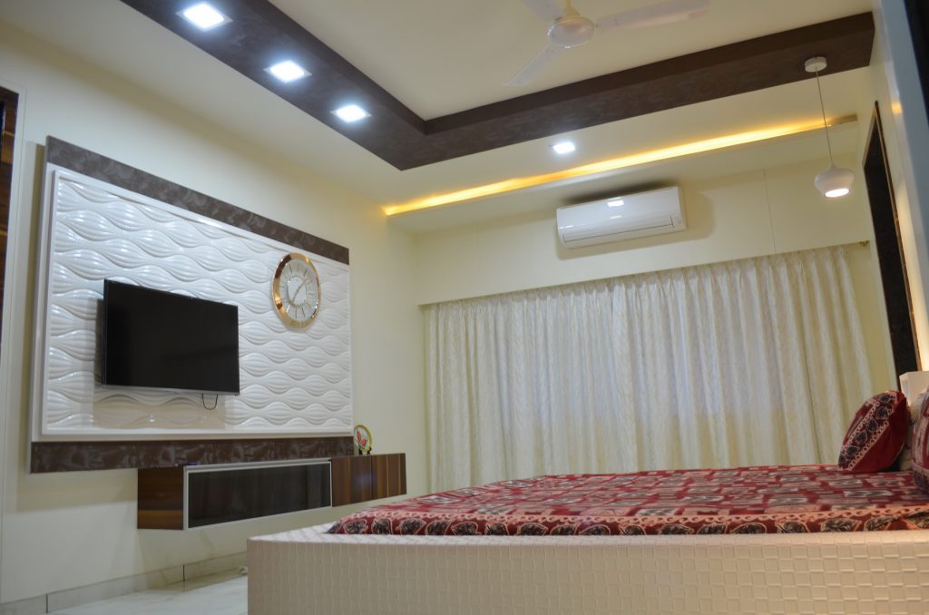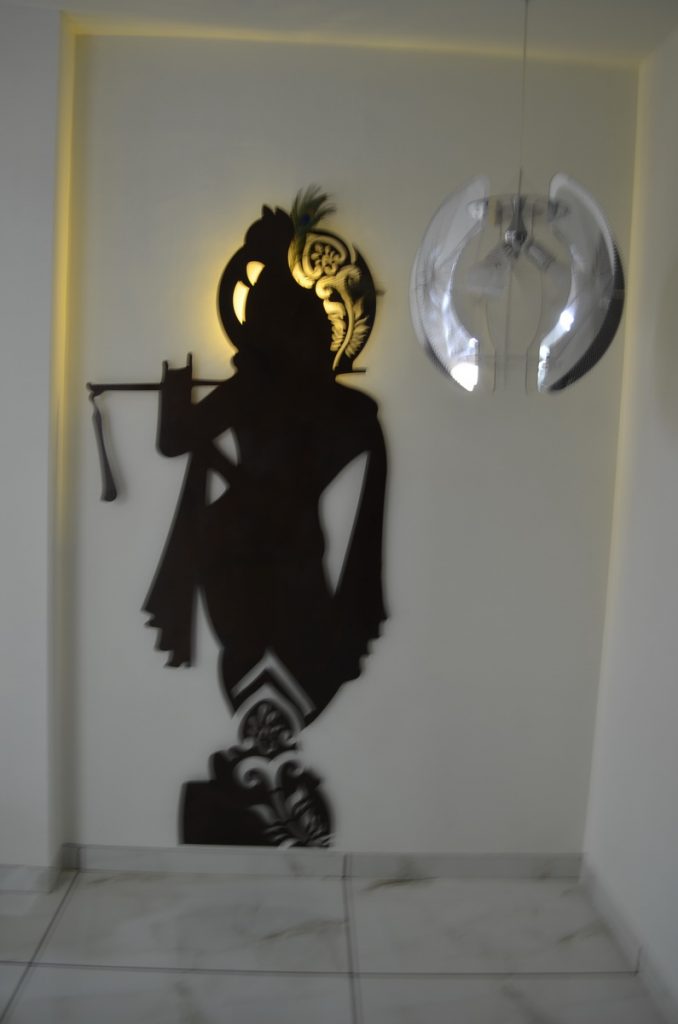 In this contemporary haven, textures dance together— intricate leatherwork, avant-garde stretch ceilings, and the refined charm of decorative laminates. Wooden patti details echo a timeless aesthetic, infusing warmth. A canvas of innovation unfolds in every corner, harmoniously merging diverse materials to create a dwelling where creativity and design converge seamlessly, crafting a unique blend of style and comfort.