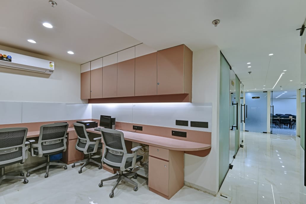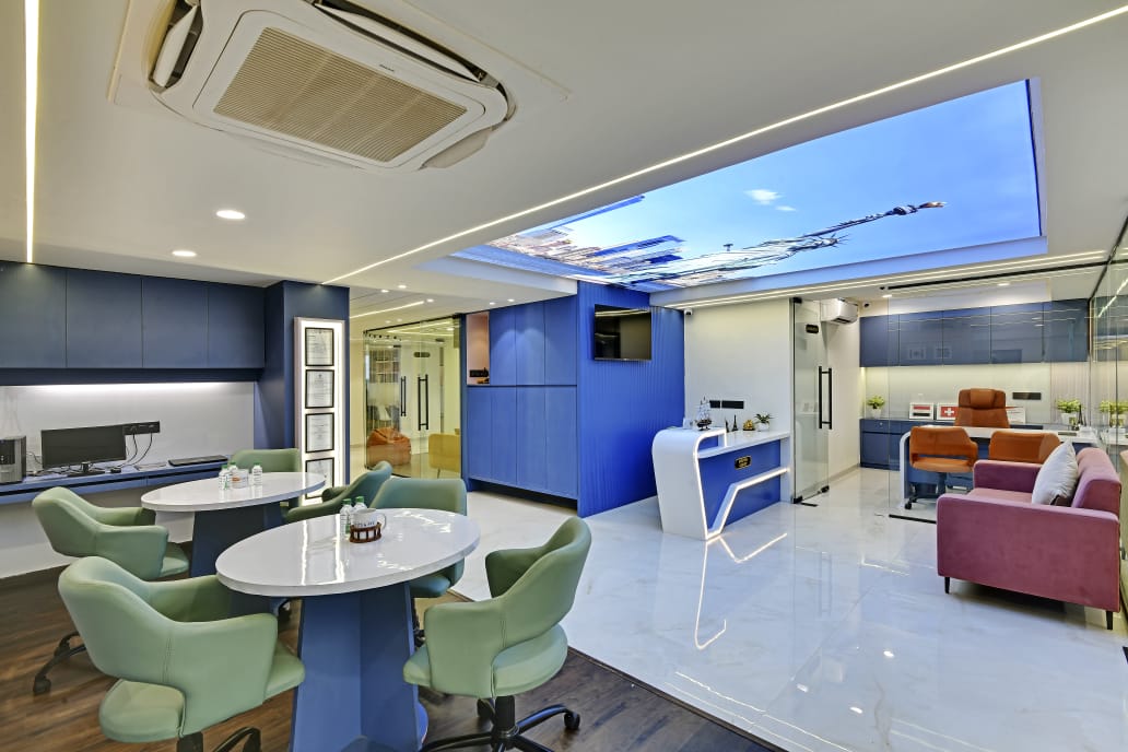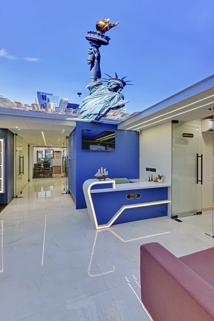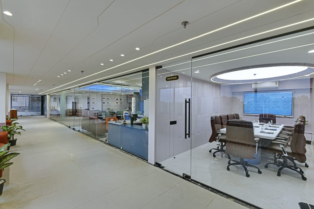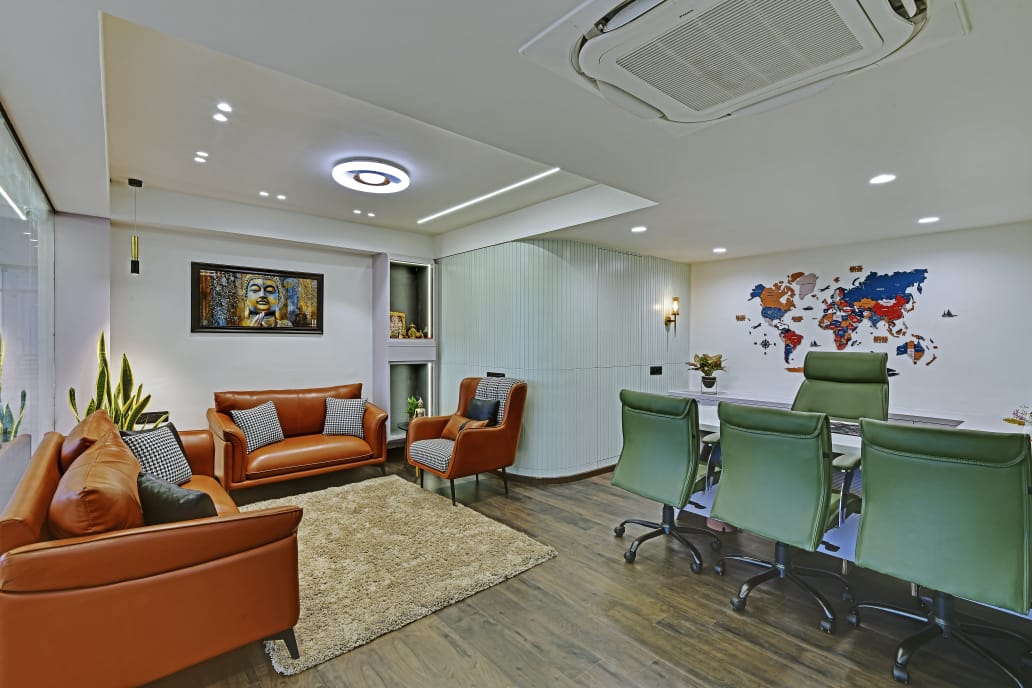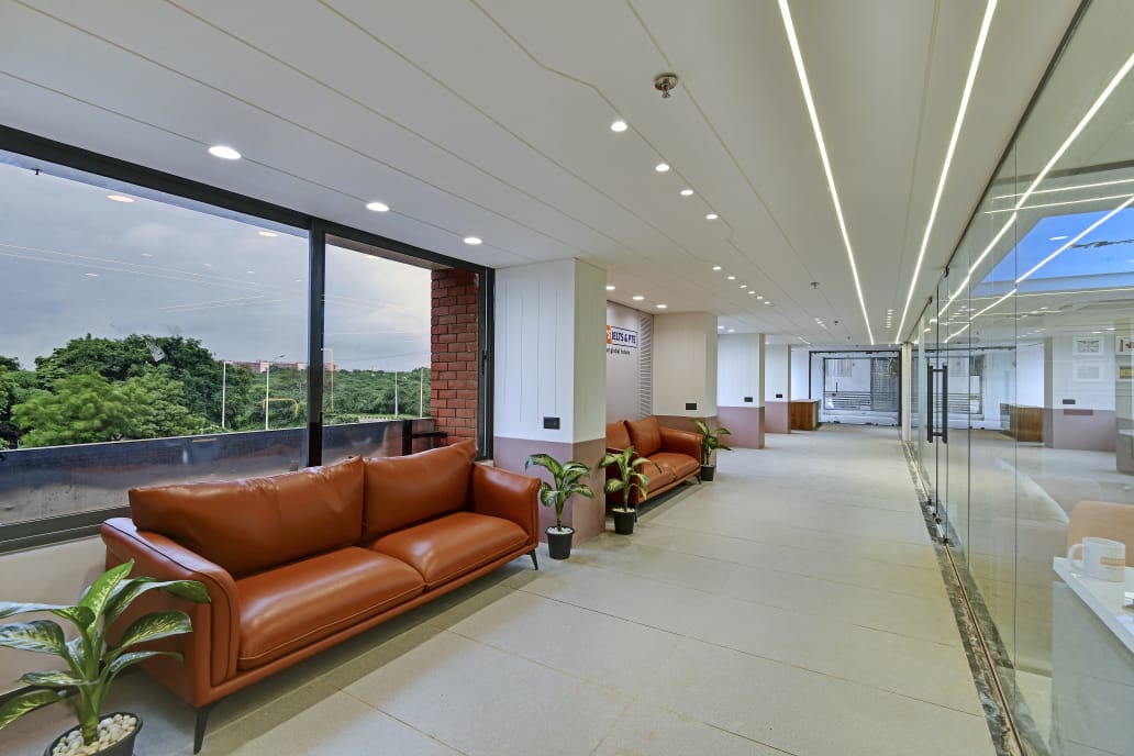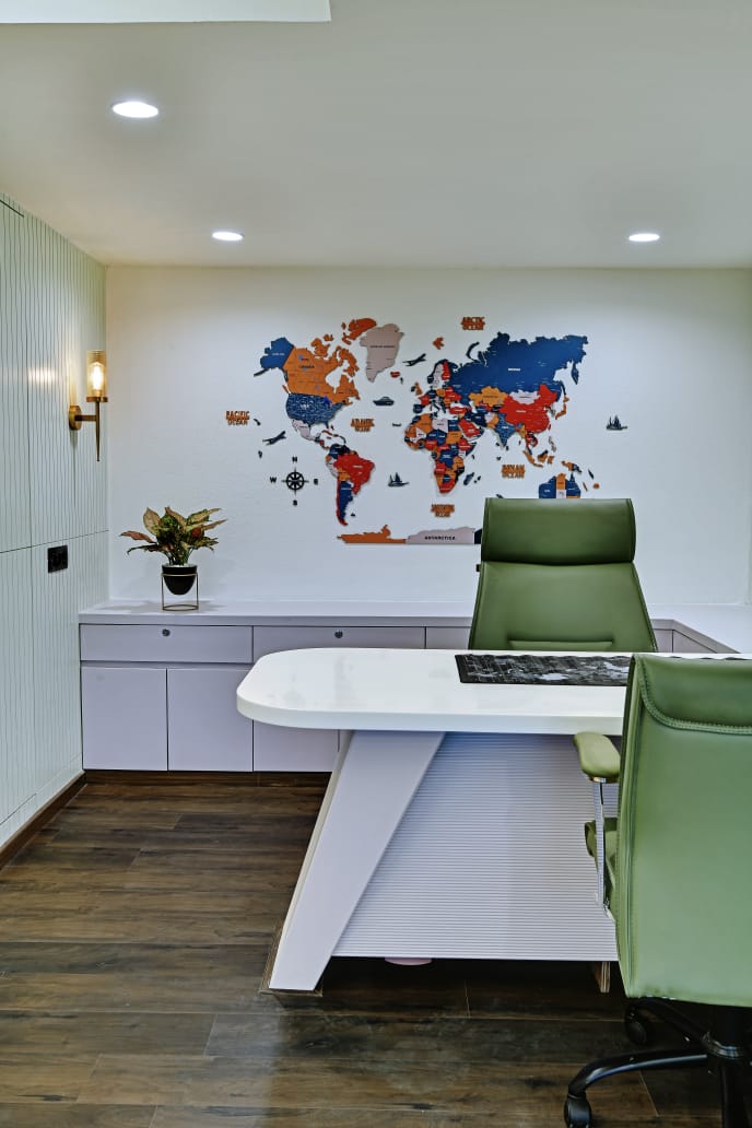 The office interior project for Mehul Soni’s IELTS & PTE, located in Gandhinagar, Gujarat, spans a carpet area of 3,000 square feet. The design seamlessly blends modern aesthetics with functionality, utilizing materials such as glass, laminate, acrylic sheet, Corian, stretch ceiling, and leather. These elements contribute to a contemporary and sophisticated environment that enhances both the visual appeal and the practical aspects of the office space. The choice of materials reflects a commitment to quality and durability, ensuring a professional and welcoming atmosphere for clients and staff alike. The project is a perfect example of a stylish, yet efficient workspace tailored to meet the needs of an educational institution.